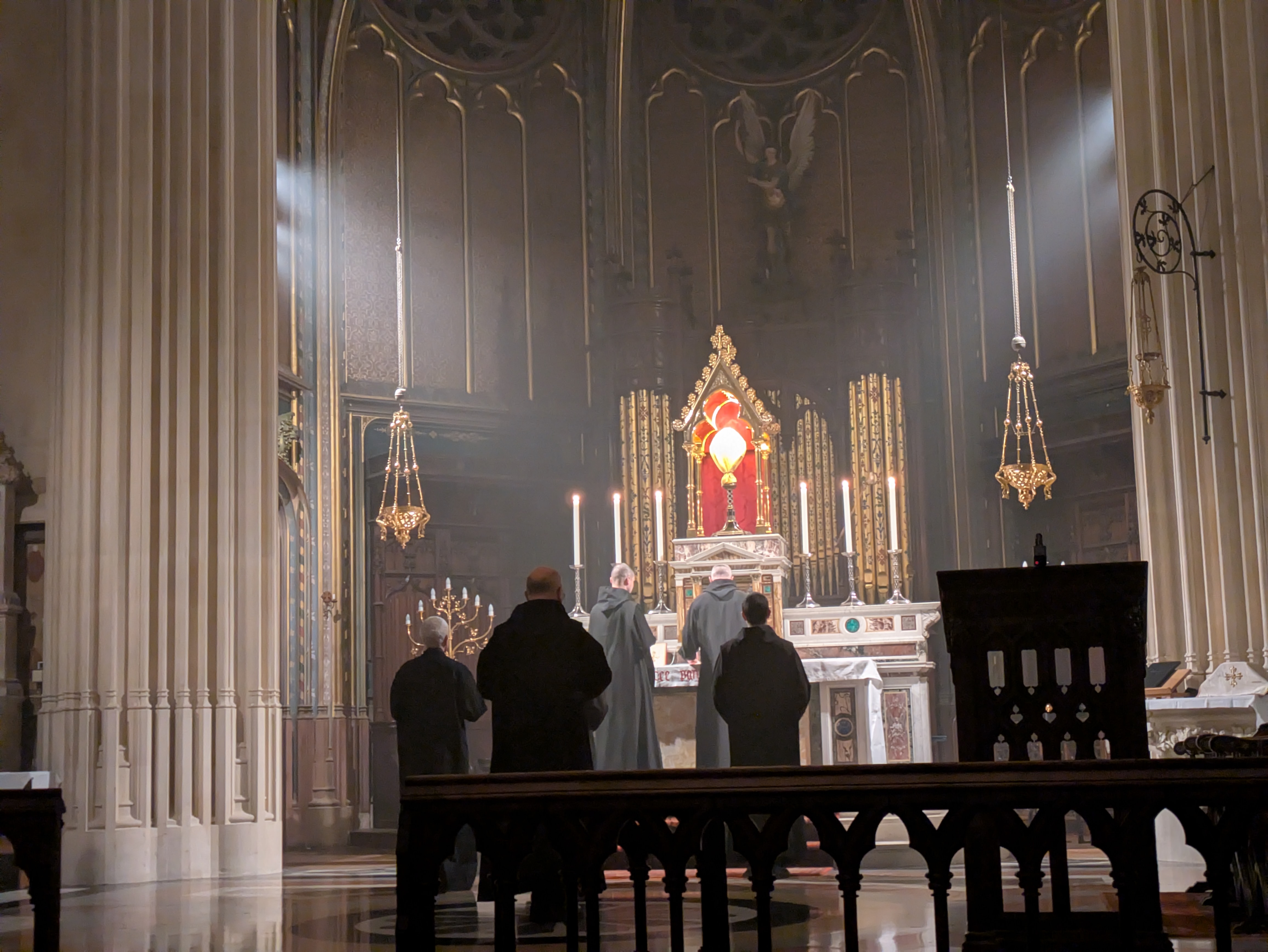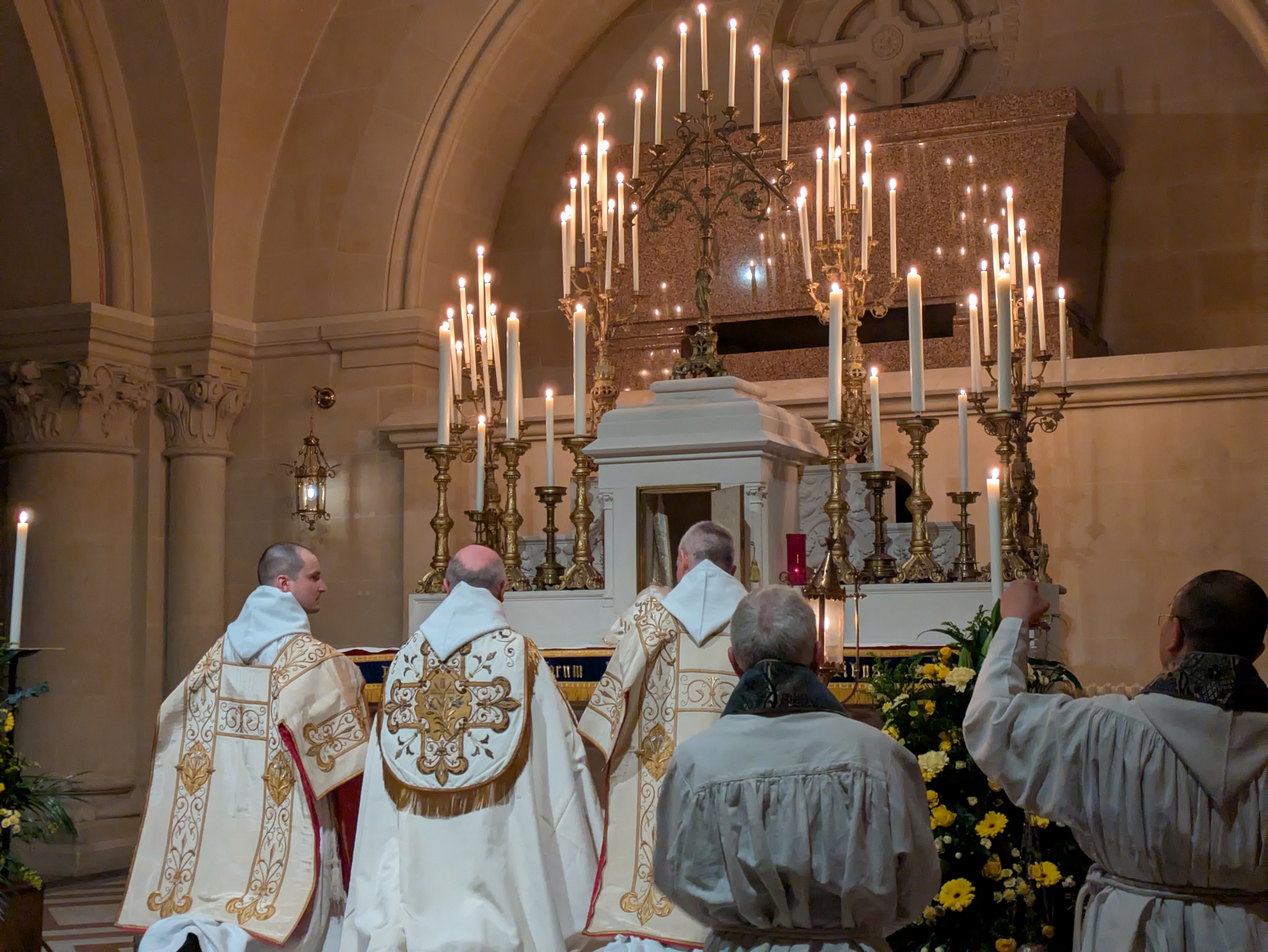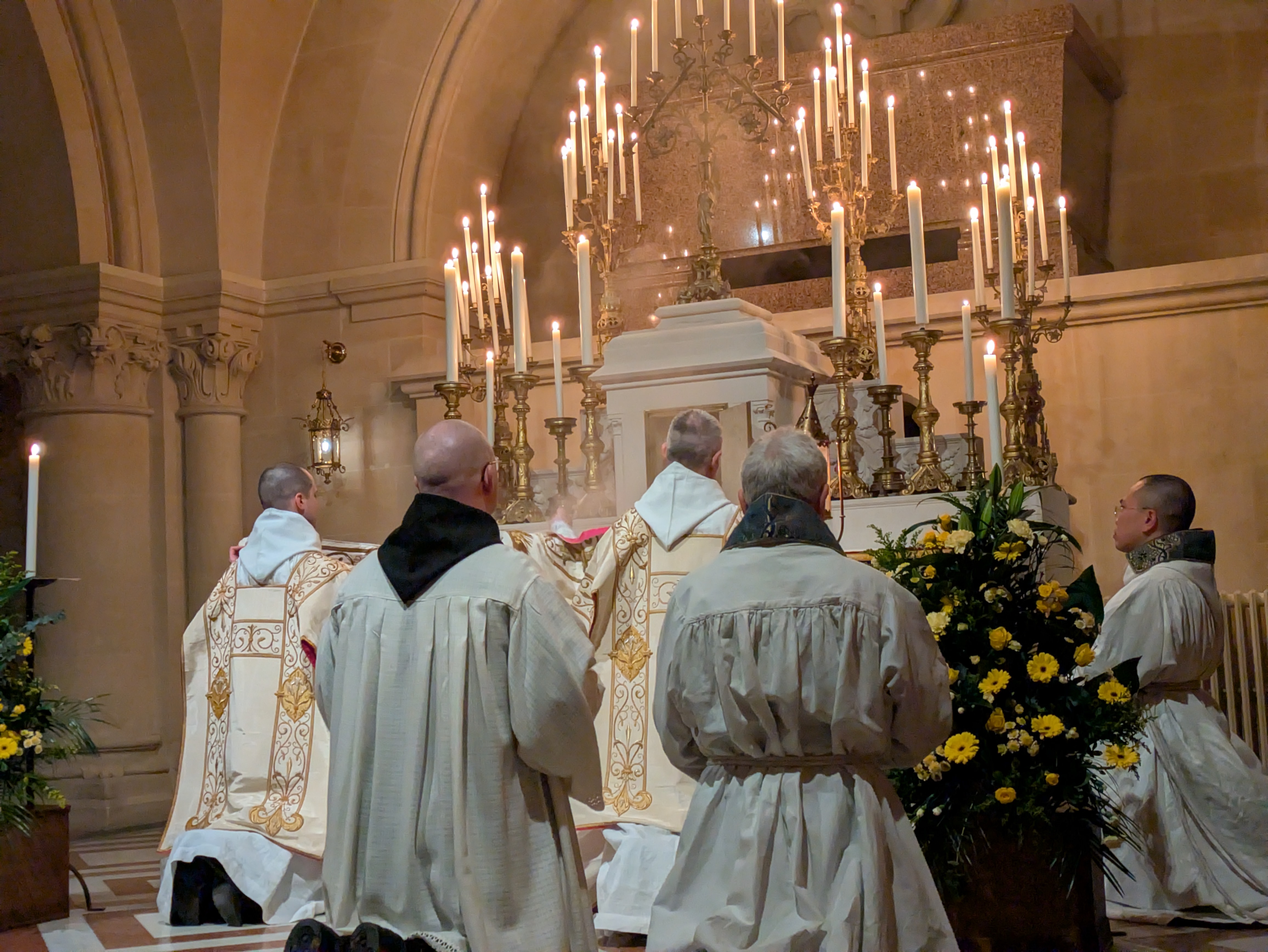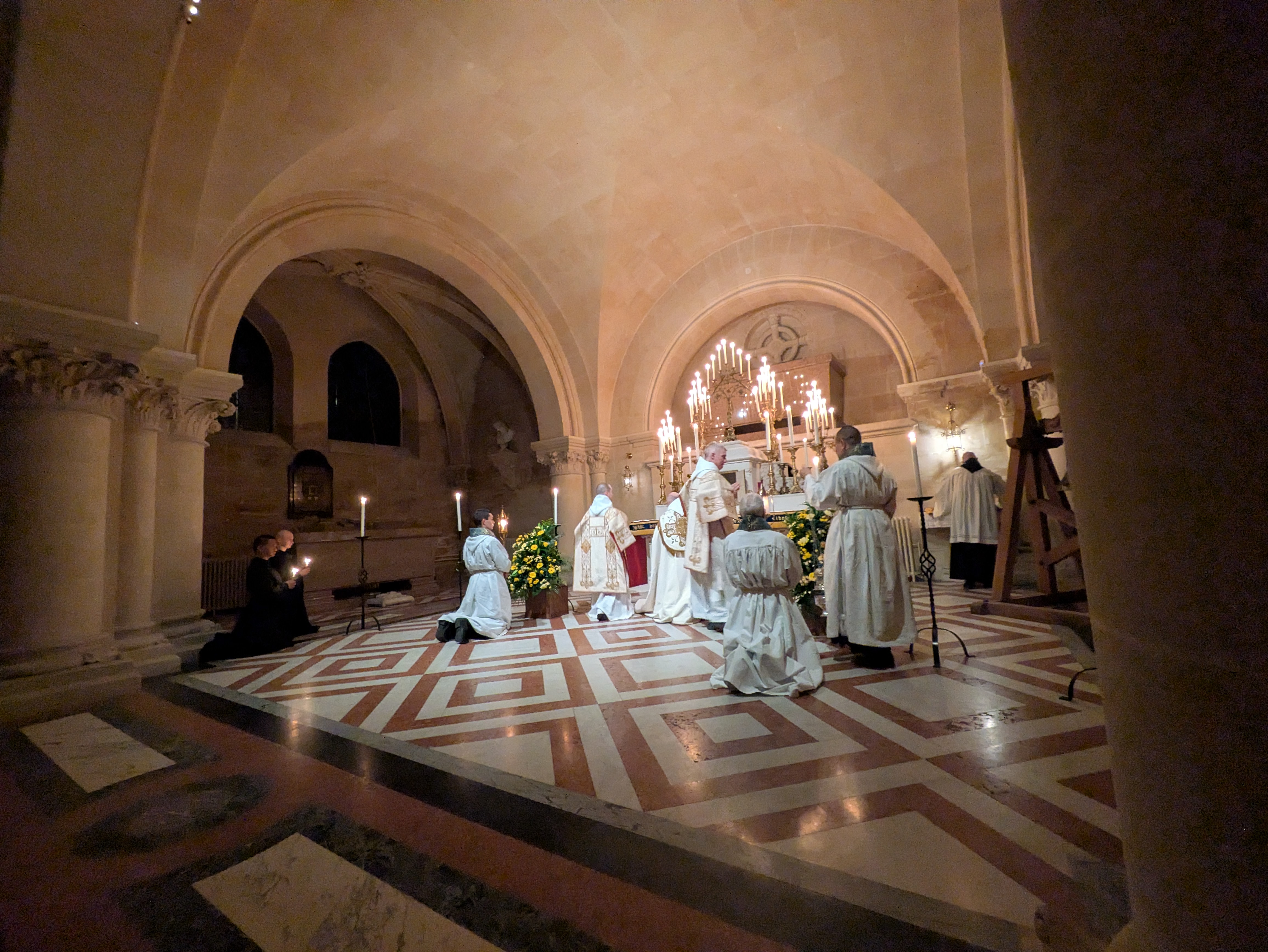 這晚的禮儀最後以夜禱作結。有趣的地方是,《隱修日課》平日是不會唸《羅馬日課》每晚都會唸的《西默盎讚歌》,但卻出現在聖週四及聖週五的《隱修日課》夜禱當中。